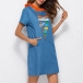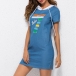 Upgrade your style with the help of this denim dress. The contrast color element and chic printed pattern