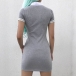 the simple and dull design style. Finished with short sleeve,POLO collar and a fit silhouette design,