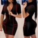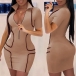 Contrast color design makes it look more stylish.The zipper design at the front side allows it to be a v-neck style.