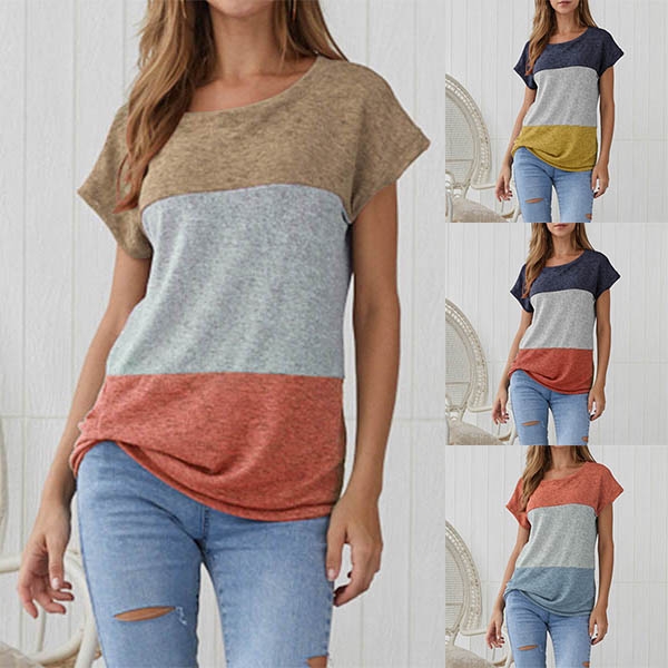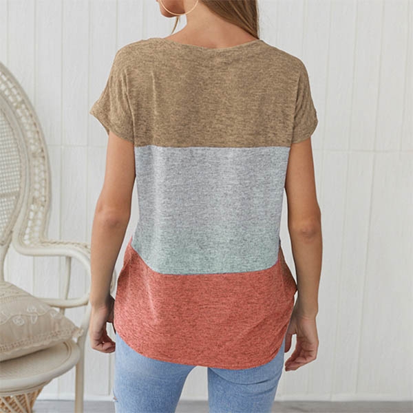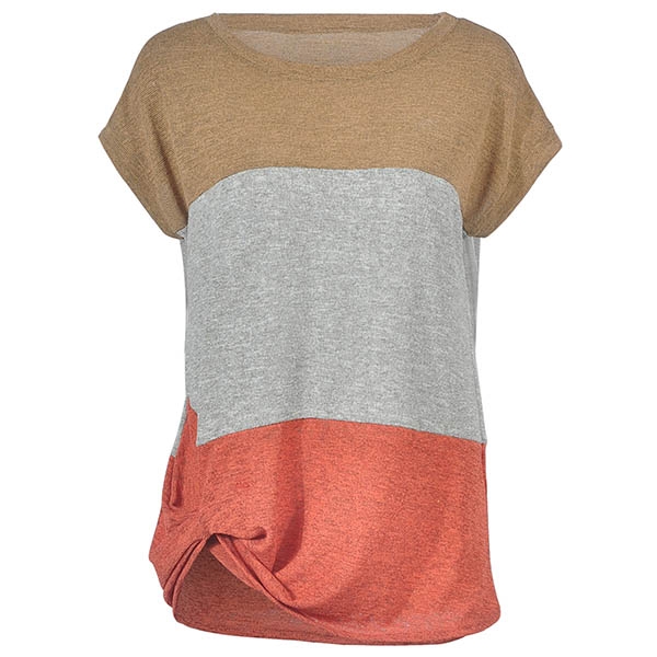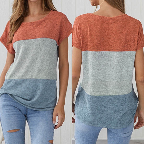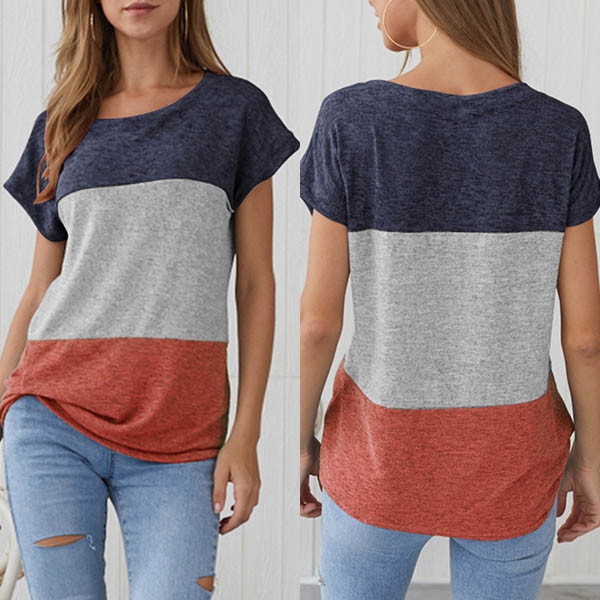 Fashion Contrast Color Short Sleeve Round Neck T-shirt