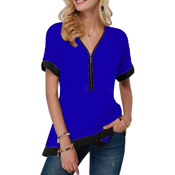 Contrast color and irregular hem design break the simple and dull design style. And the zipper