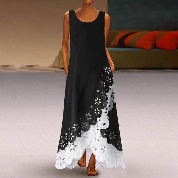 Finished with sleeveless,round neck and an irregular hem design,this dress is perfect fit for your fancy events.