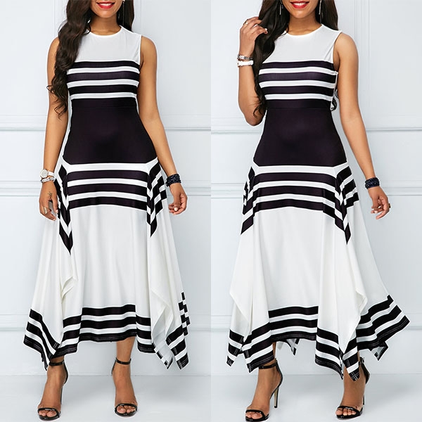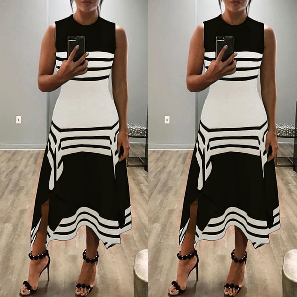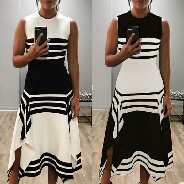 You can easily enhance your style with the help of this dress. Contrast color style,finished with sleeveless,