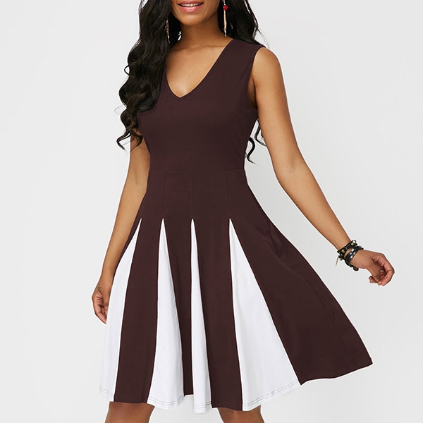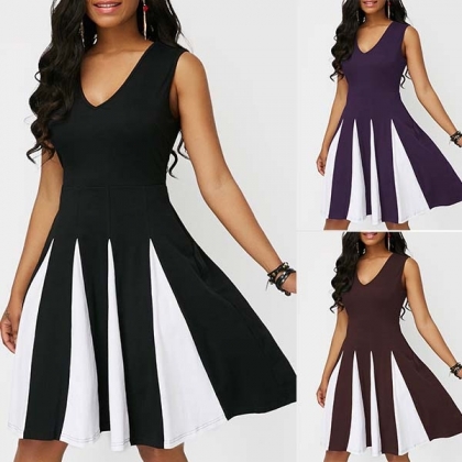 dates or weekend out. Features contrast color element,finished with sleeveless,v-neck and a clean silhouette,