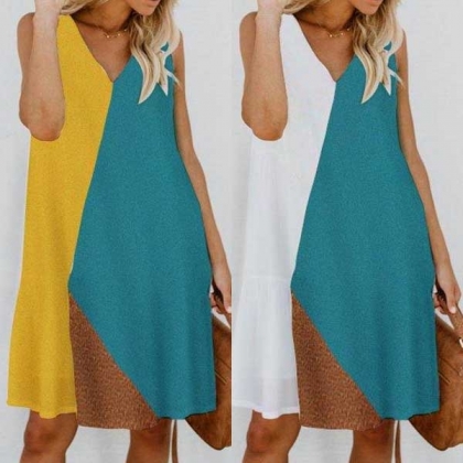 makes it look so stylish and attractive. Finished with sleeveless,v-neck and a loose silhouette,this dress