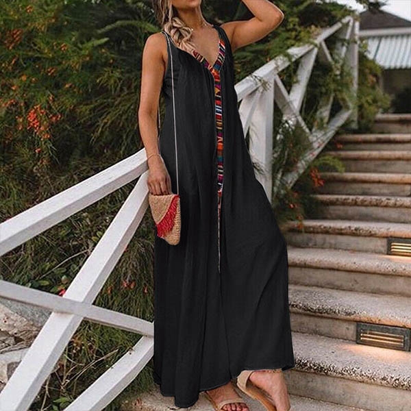 Finished with sleeveless,v-neck and maxi length design,the contrast color design will further enhance its charm.
