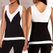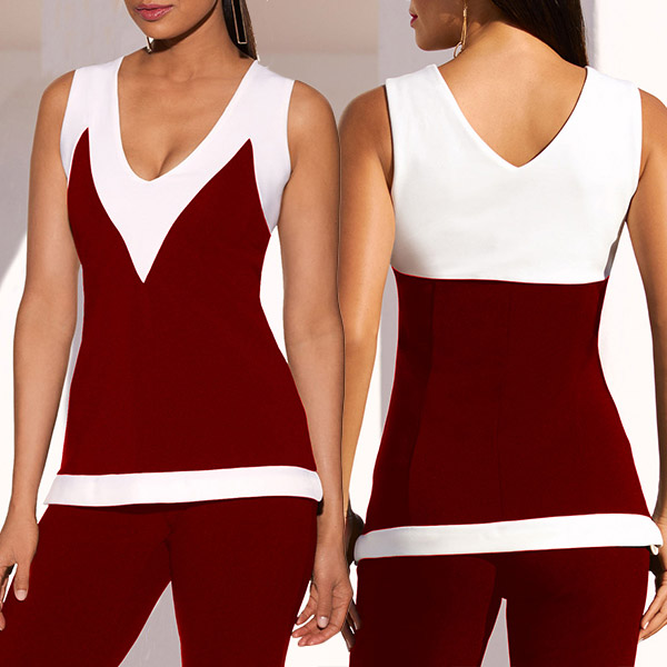 Contrast color design makes it look not so simple and dull,while the sleeveless and v-neck design will boost