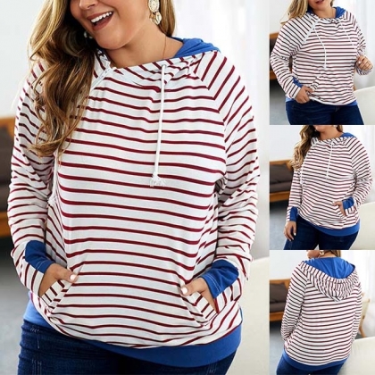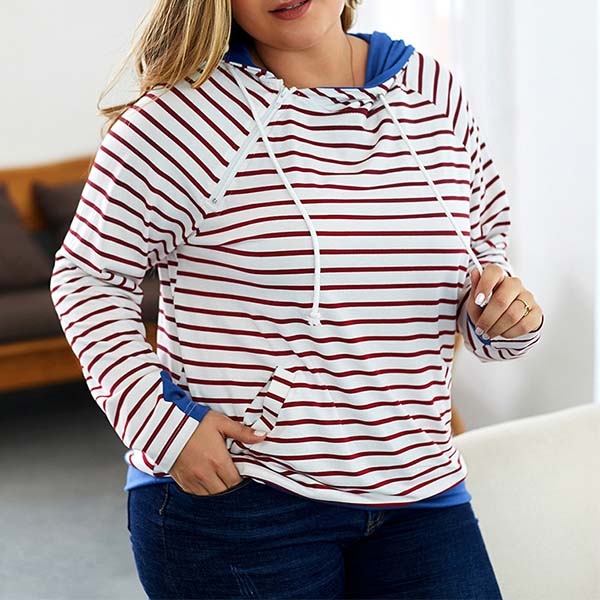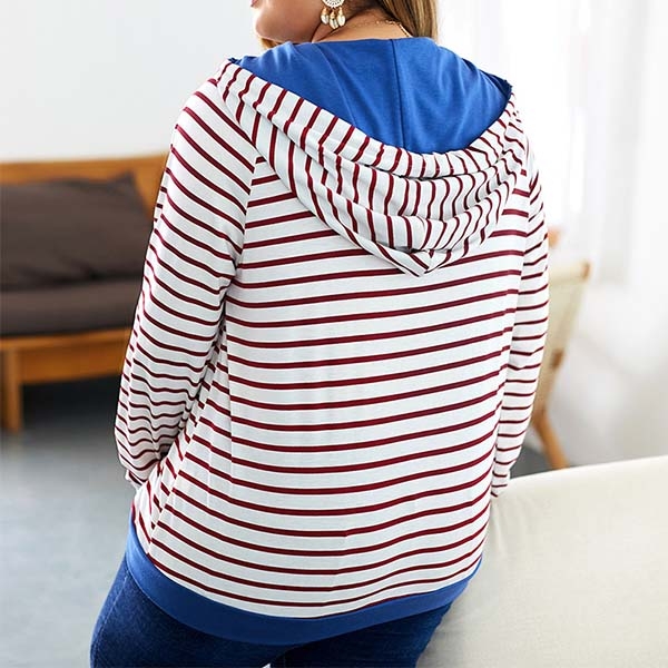 Fashion Contrast Color Striped Oversized Plus-size Hoodie