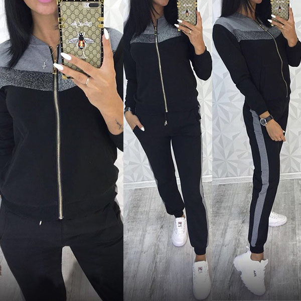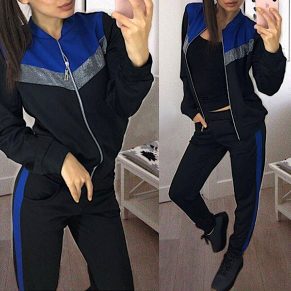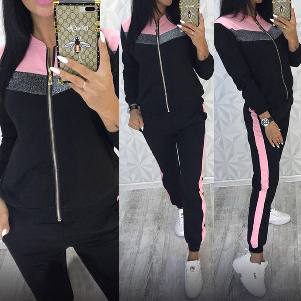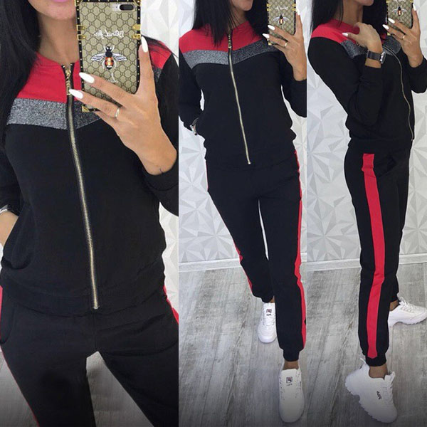 Contrast color style,including a long sleeve sweatshirt coat and a sports pants,this sports suit can