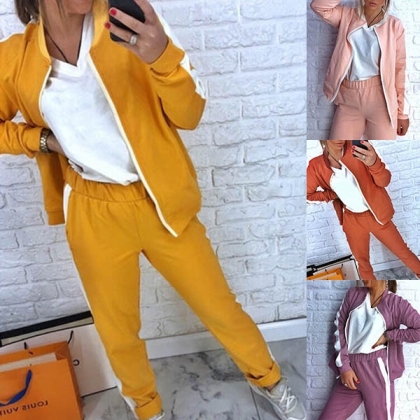 sweatshirt coat and a pants,the contrast color design will break the simple and dull design style. Thanks to