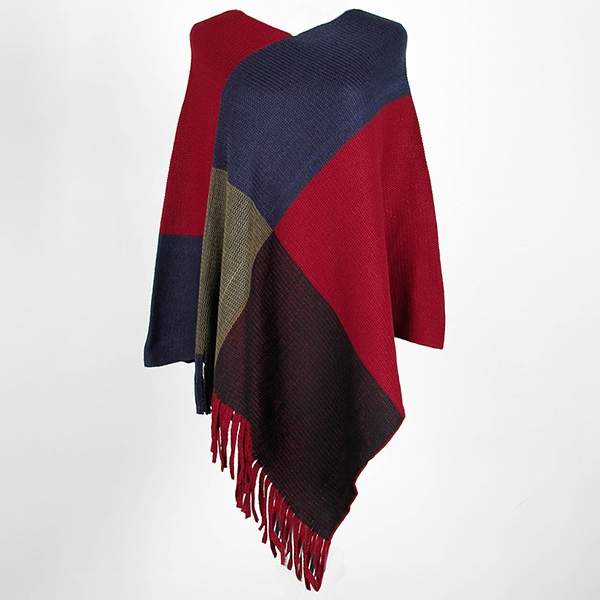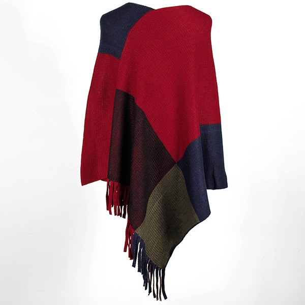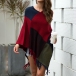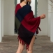Fashion Contrast Color Trumpet Sleeve Irregular Hem Shawl-style Sweater