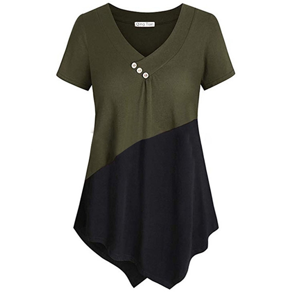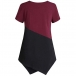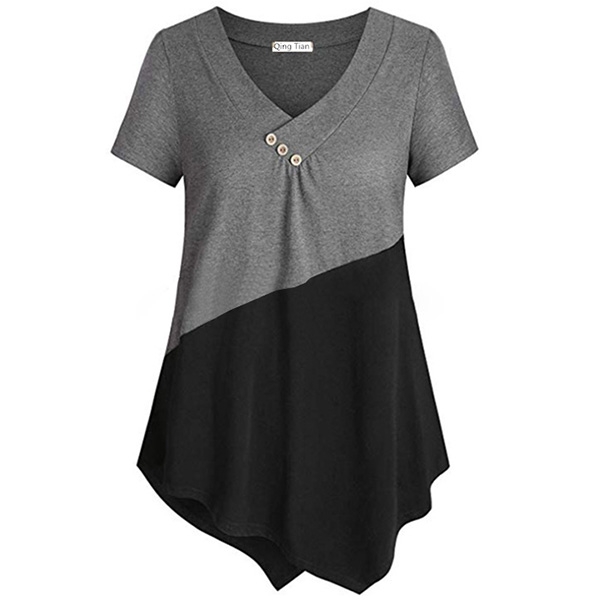 Contrast color style,finished with short sleeve,v-neck and an irregular hem,this piece knows how to