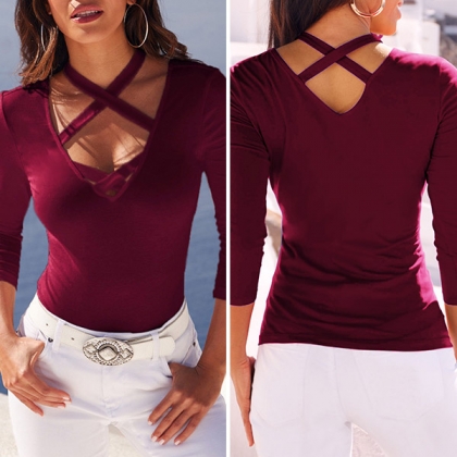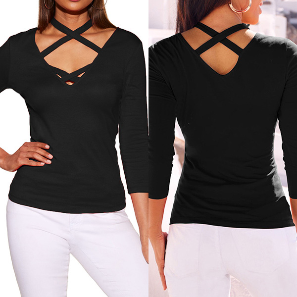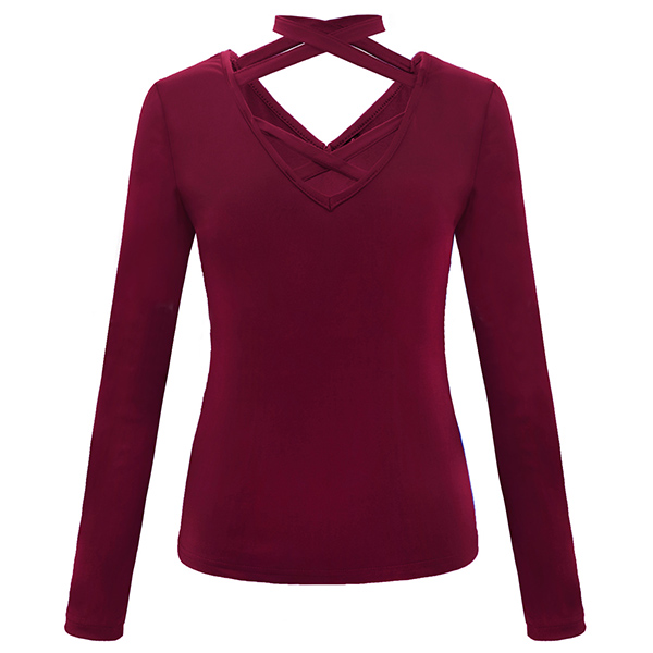with long sleeve and slim fit and without any redundant decoration.Crossover halter is great to make