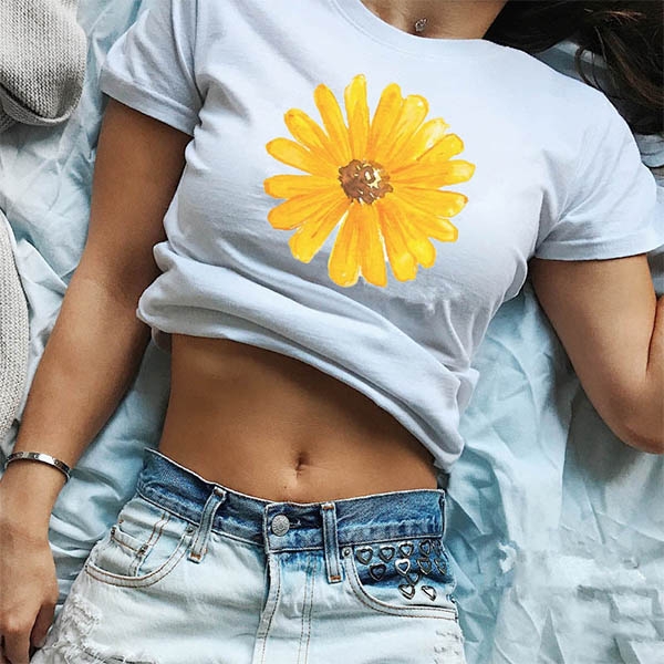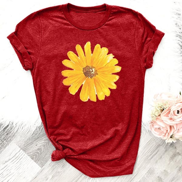 finished with short sleeve and round neck design,the daisy printed pattern design will add its charm.