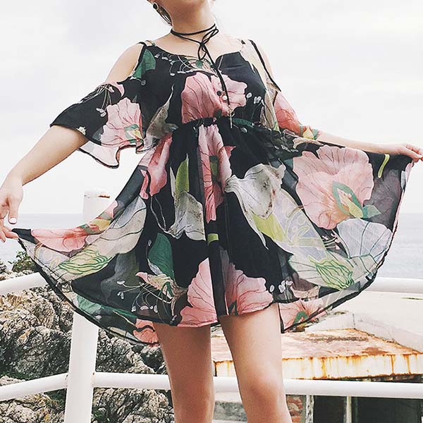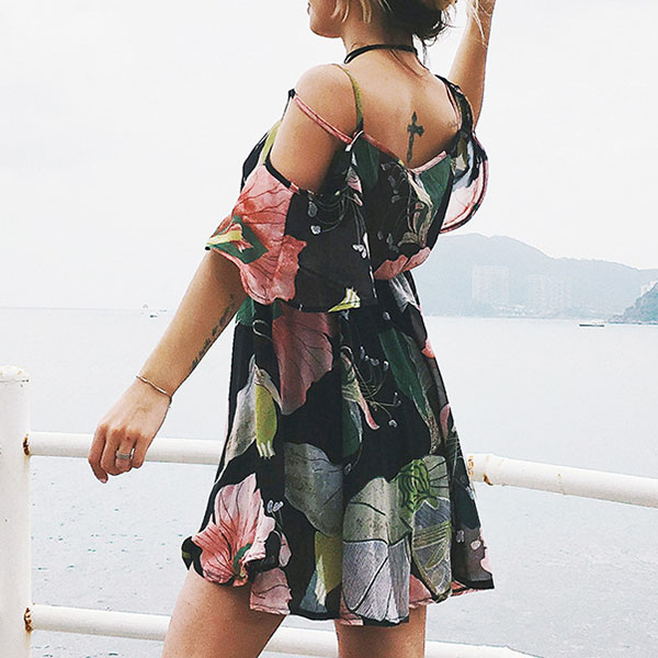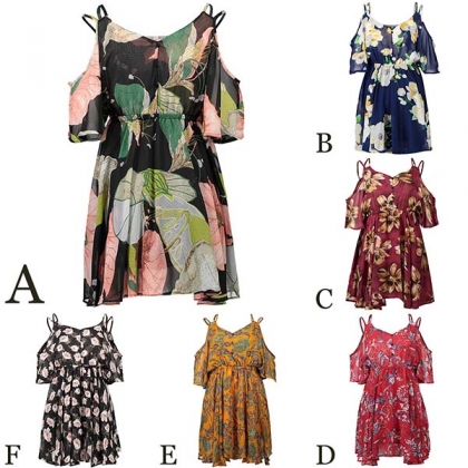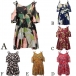 with short sleeve,printed pattern and deep v-neck,one concealed cord ties at the waist,