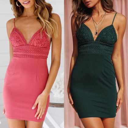 and soft polyester fabric material woven,with sleeveless and deep v-neck.The plunging neckline