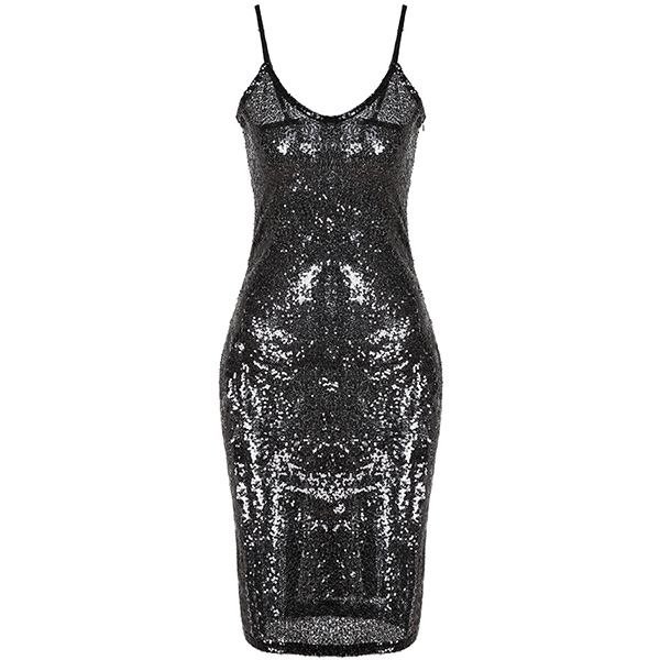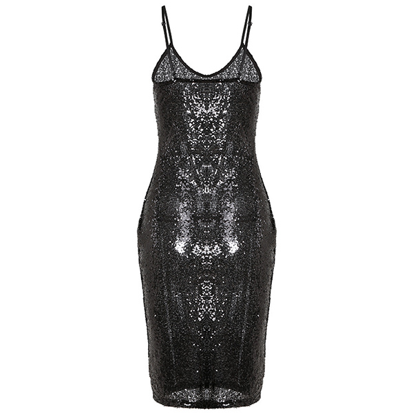 The dress in a soft and high quality material woven,with deep v-neck ,sleeveless and slim fit.Paillette