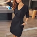 If you like simple and concise dress,then this one is a good one to try.Its in high quality and soft material,with deep v-neck,long sleeve and a slim fit silhouette,