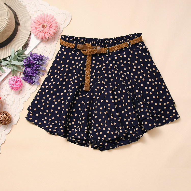 Fashion Dot Chiffon Mini skirt With belt