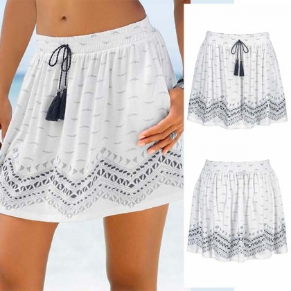This skirt is designed with chic printed details,which make it look not so simple and dull. And the drawstring