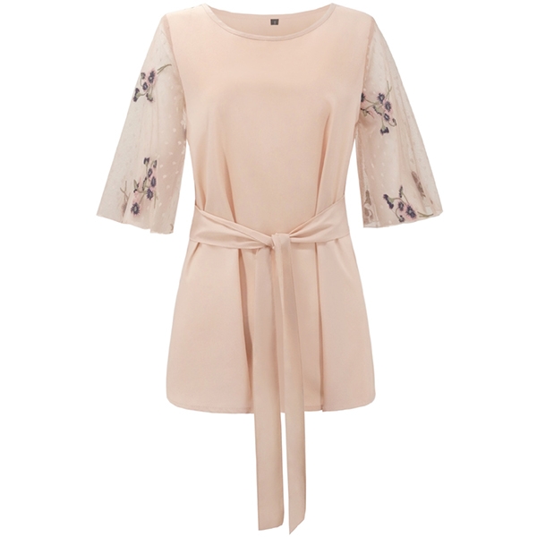 Only need one glance,you can be attracted by this beautiful top. The gauze trumpet sleeve with