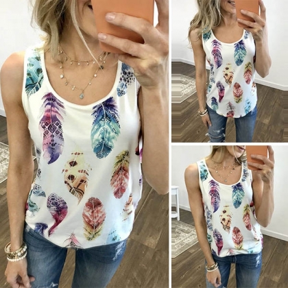 For these hot summer days,a tank top is an essential. So how about this one? Its feather printed