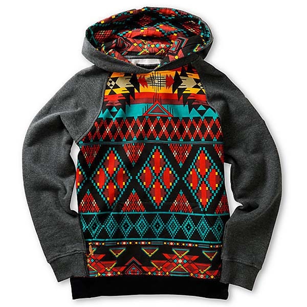 This hoodie is designed with geometric printing spliced design,which can give you a more eye-catching look.