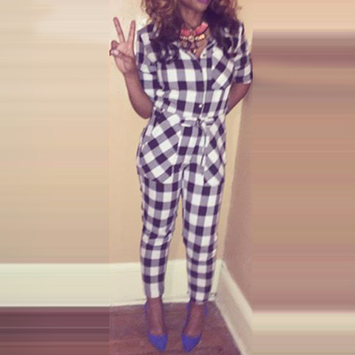 Except for plaid dress,your wardrobe should also have a classic plaid jumpsuit,and this piece is