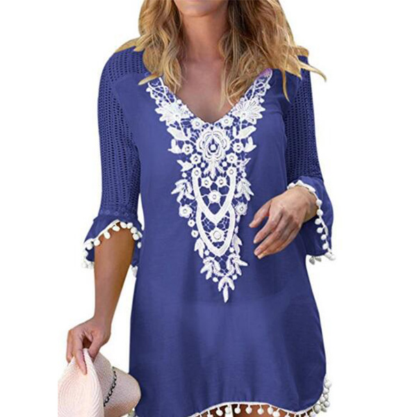 v-neck and lace spliced details,chic,stylish and attractive. When you slip into this dress,you can instantly