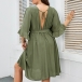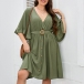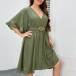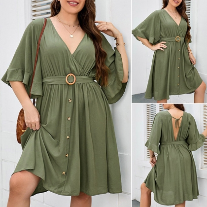 No matter for your workdays or weekend out,this dress can give you an easy transition.Comes with a solid color,with half sleeve and v-neck design,this piece can ensure you a comfortable day with its soft and breathable fabric. Moreover,the waist strap design will further enhance its charm. So why not take interest in it?