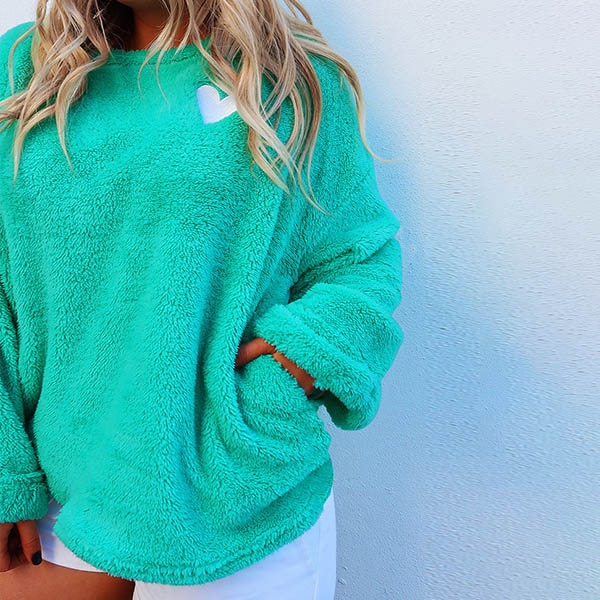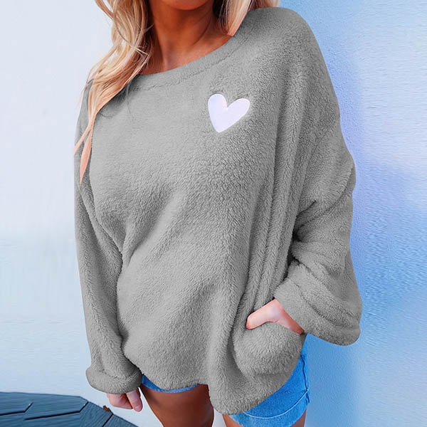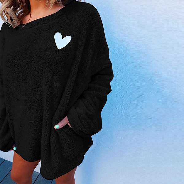 For the cold days,it is wise for you to slip into this plush sweatshirt. The heart embroidery pattern