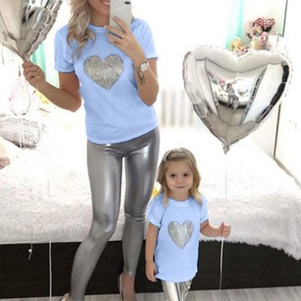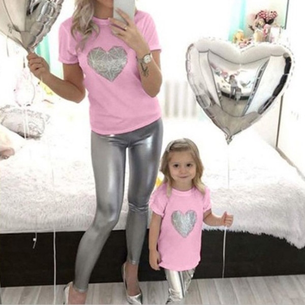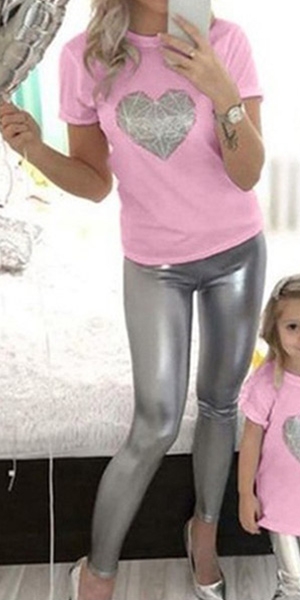 Fashion Heart Printed Short Sleeve Parent-child T-shirt
