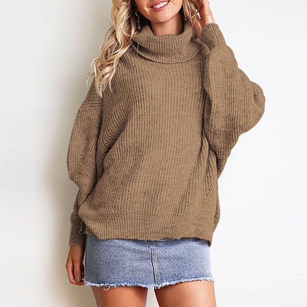 In a loosely woven design featuring a high neckline to let your face look more slender, come with long