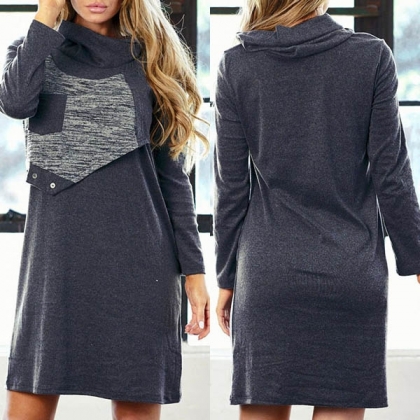 material woven, with high neck,long sleeve and oblique fabric spliced design.The slim fit style