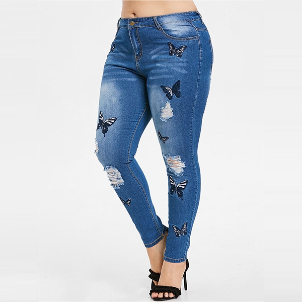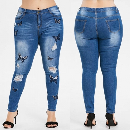 silhouette design can showcase your slender legs,while the butterfly printed and ripped details make