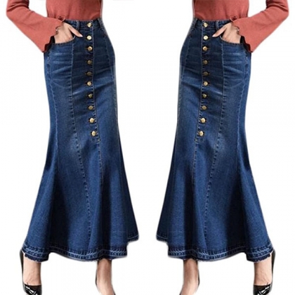 Your daily style can have an instant boost when you wear this denim skirt. The high waist