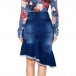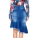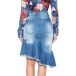 You can easily enhance your feminine appeal with this denim skirt. It is finished with high waist,