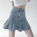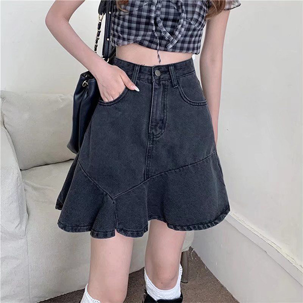 This denim skirt comes with high waist and frayed hem,classic yet stylish. No matter matching with a simple t-shirt or skirt or a crop top,you can look charming and beautiful enough! Inviting it to your wardrobe would be a wise choice.