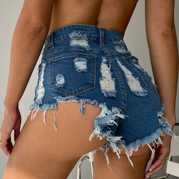 Fashion High Waist Frayed Hem Ripped Denim Shorts