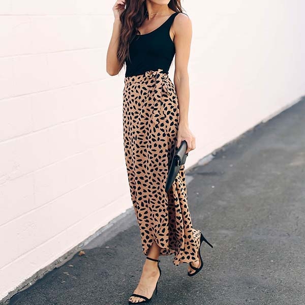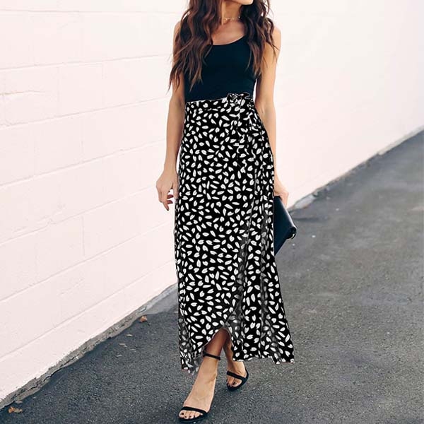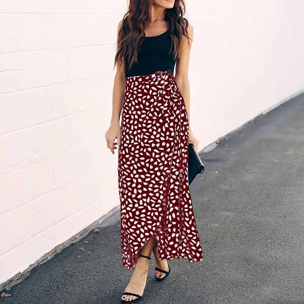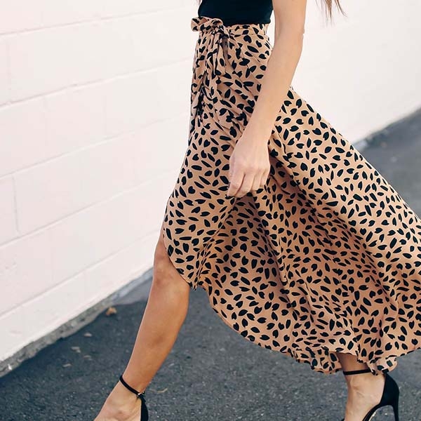 printed details make it look so stylish and eye-catching. Finished with high waist and an irregular hem design,