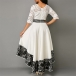 an irregular hem skirt, lace trim accent at the hemline, slip into your favorite high heels