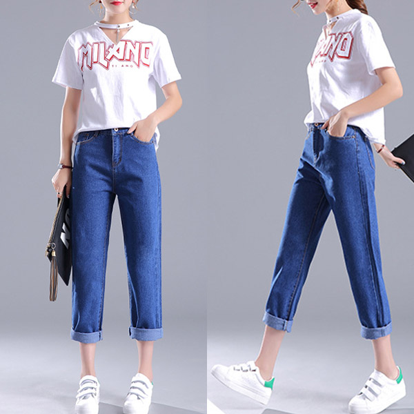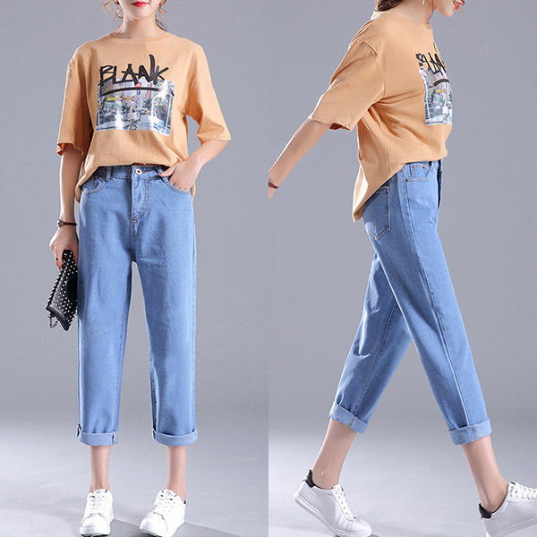 Crafted from soft and breathable fabric,with high waist and a relaxed-fit silhouette,this jeans not only