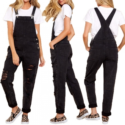 Din garderob skulle bli mer komplett genom att lägga till denna jeansoverall. De trasiga detaljerna kommer att förstärka dess charm,