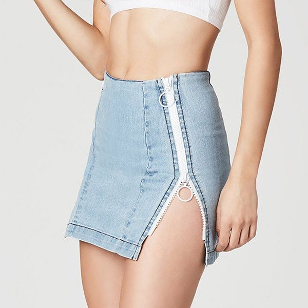 Your wardrobe should have such a simple,stylish and all-match denim skirt. It is finished with high
