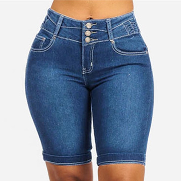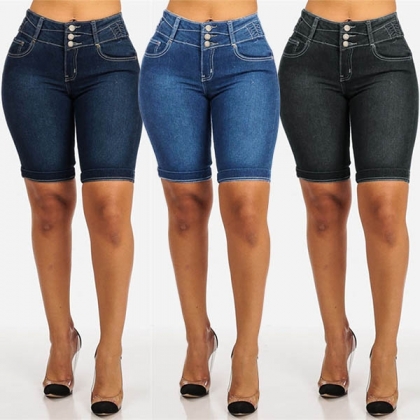 So how about this denim shorts? It is finished with high waist and a fit silhouette,