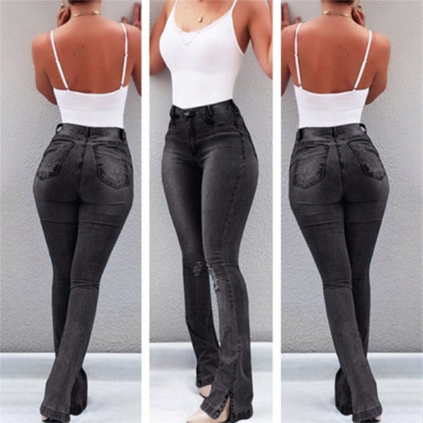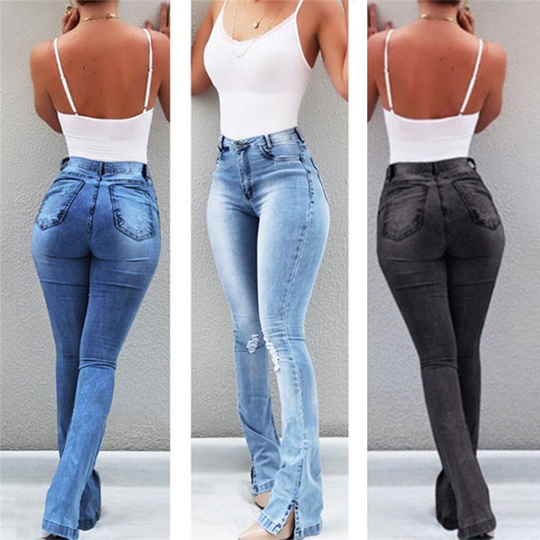 Fashion High Waist Slim Fit Flared Hem Jeans