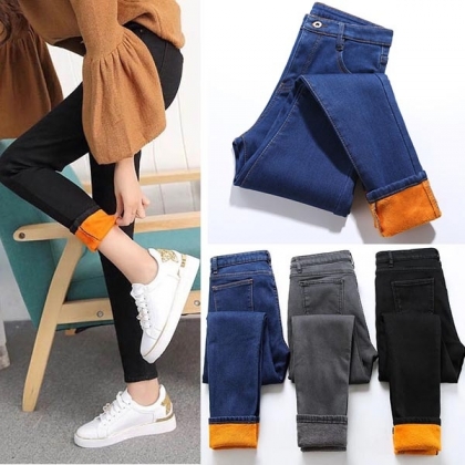 For these cold days,this jeans would be your new favourite. The skinny fit silhouette design can showcase your slender figure,while the plush lining design can keep you warm and comfy all the day. All-match design can offer you different matching styles.