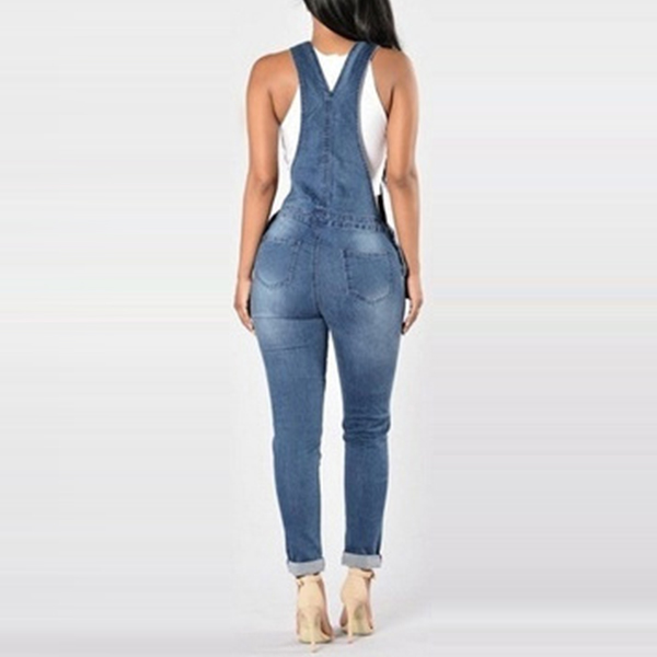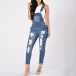 Fashion High Waist Slim Fit Ripped Denim Overalls