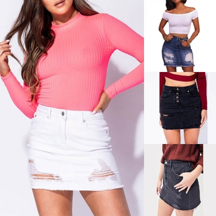 Fashion High Waist Slim Fit Ripped Denim Skirt(It falls small)