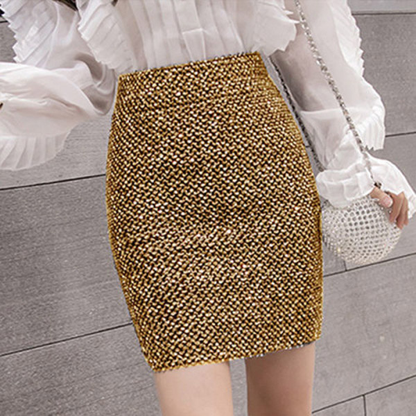 You can easily enhance your feminine appeal in this sequin skirt. The sequin details make this piece look so eye-catching. Finished with high waist and a fit silhouette,this skirt of course can showcase your seductive hips and slender figure. No matter matching with your t-shirts or shirts or crop top,it can offer you a charming appearance!